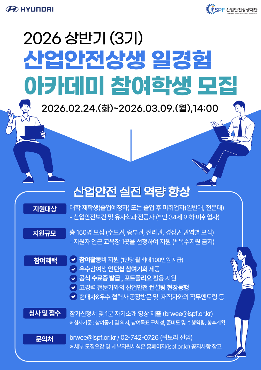 「2026 산업안전상생 일경험 아카데미(3기)」 참여학생을 모집합니다.
